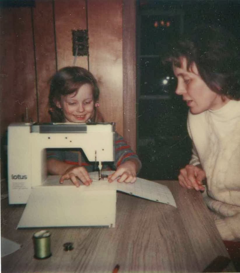 I'll have to tell the story about my first sewing machine sometime, but here's a photo of me with Mom teaching me how to sew on it: